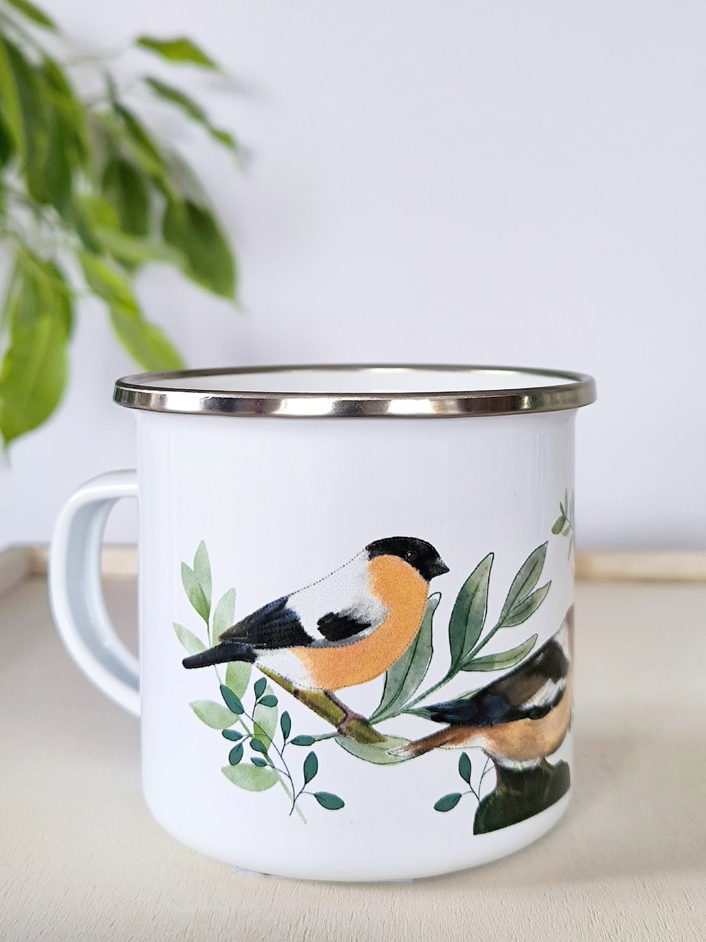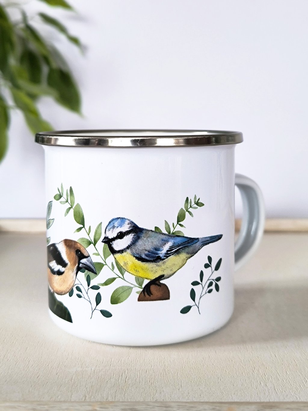 Plechový smaltovaný hrníček s obrázky s obrázky ptáčků našich lesů a zahrad. Díky lehké váze a nerozbitelnosti je to ideální společník na cesty a dovolenou.