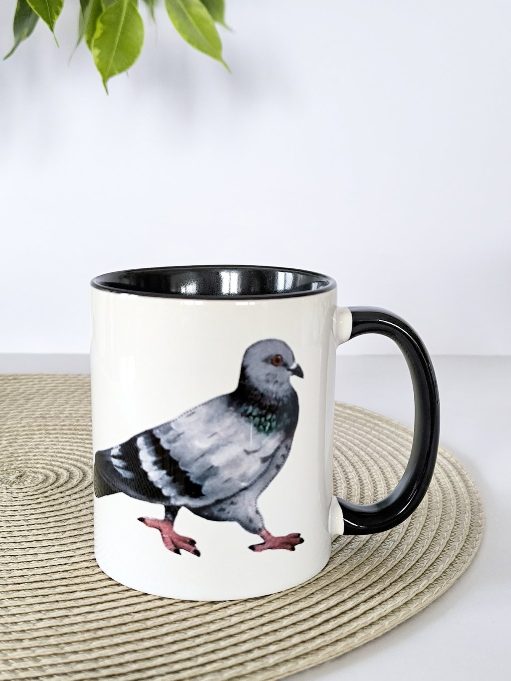 Holubí hrnek na kafíčko nebo na čaj. Hrníček je dvoubarevný, zvenku bílý, uvnitř černý a dobře padne do ruky.