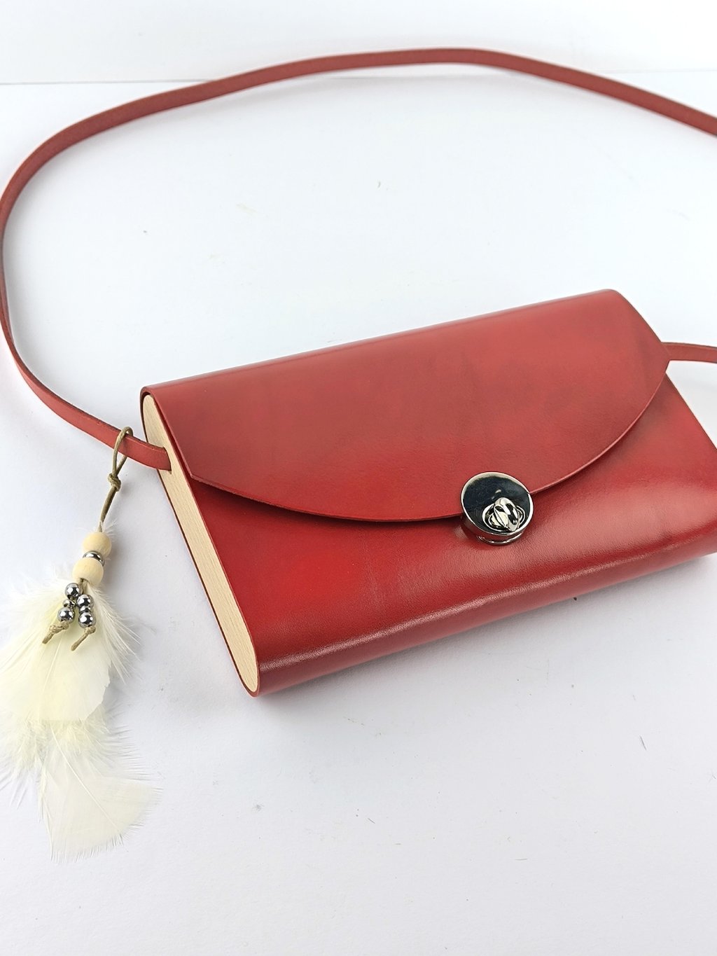 - Popruh: kabelka má tenký kožený popruh, který jednoduše protáhnete z boku kabelky a upevníte ho na uzlík. Délku si tak můžete libovolně upravit