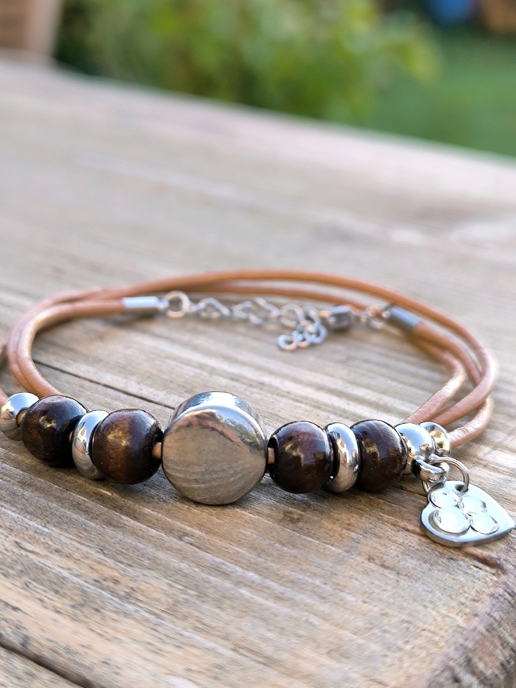 - Materiál - kůže, nerezová ocel typu 304 a chirurgická ocel typu 316l, dřevěné korálky