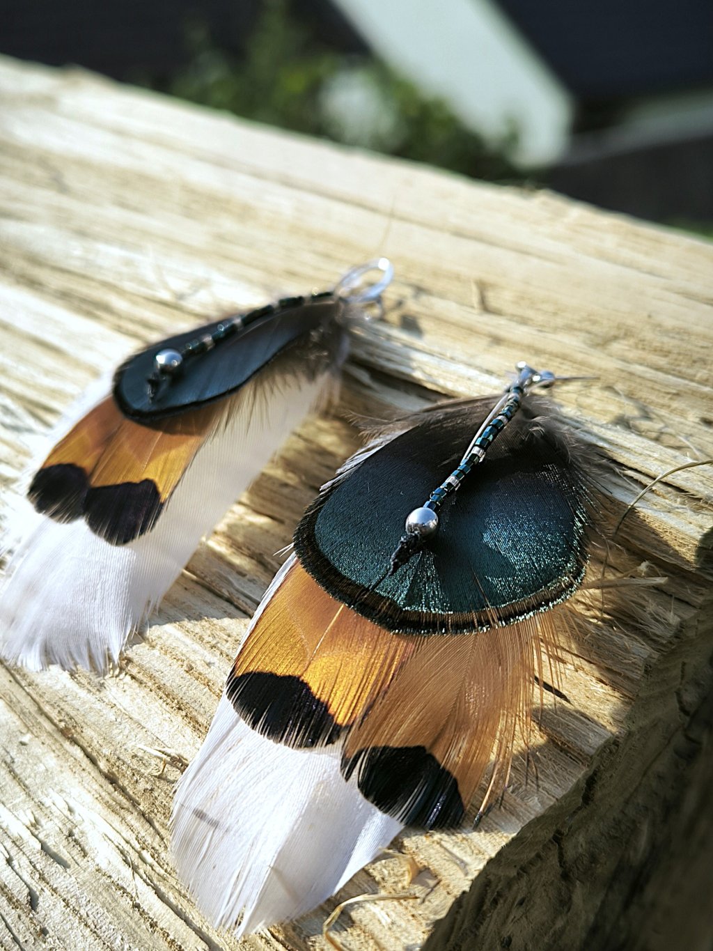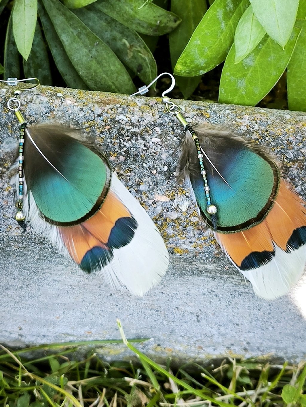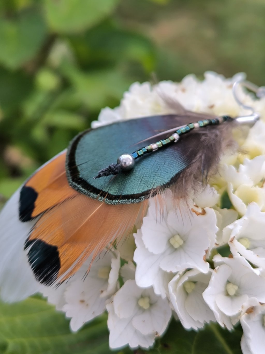 Lehoučké náušnice z ptačích pírek pro letní romantiku. Použité komponenty jsou z chirurgické oceli, která je hypoalergenní, odolná a vhodná i pro citlivé uši. Náušnice jsou vyrobené z peří, které je získané eticky a to sběrem peříček, které ptáci přirozeně ztratili. Použité komponenty jsou z kvalitní chirurgické oceli.