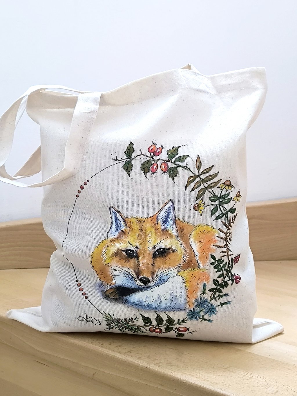 Noste svůj nákup originálně v ručně malované plátěné tašce s krásným obrázkem lišky. 100% bavlna, ideální na nákupy i každodenní nošení. Každý kus je originál – žádná taška není úplně stejná!