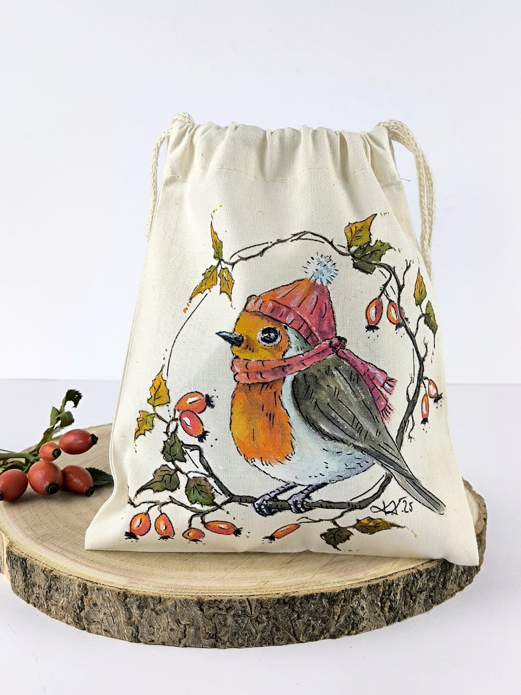 Ručně malovaný pytlíček z bavlněného plátna můžete využít na šípky, bylinky, koření, sušené houby a jiné drobnosti. Pytlíček je prodyšný, ušitý z přírodní bavlny.