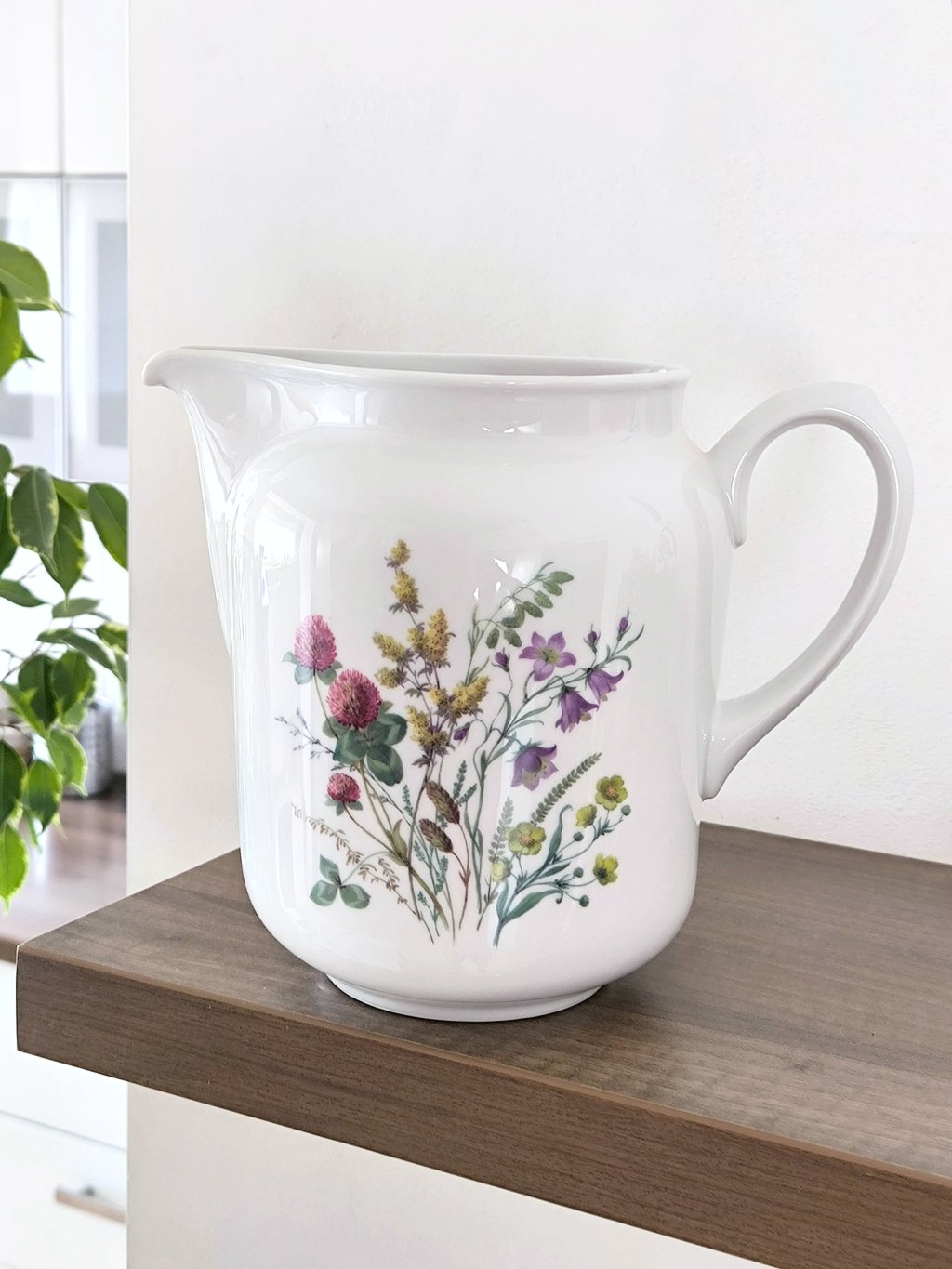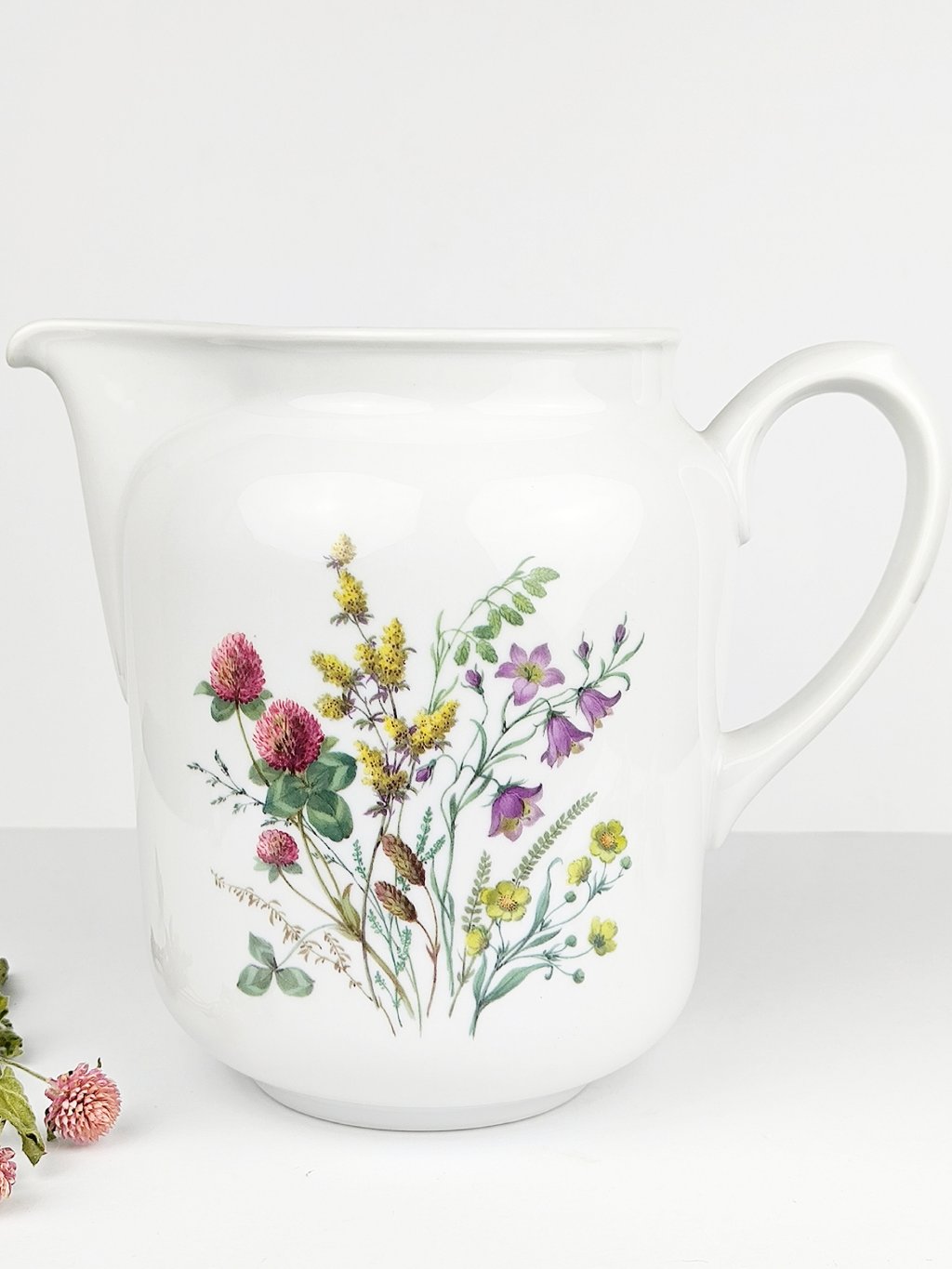 Velký porcelánový džbán s oblíbeným motivem lučního kvítí.