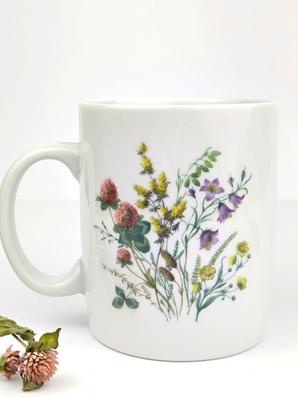 Velký porcelánový hrnek s oblíbeným motivem lučního kvítí.