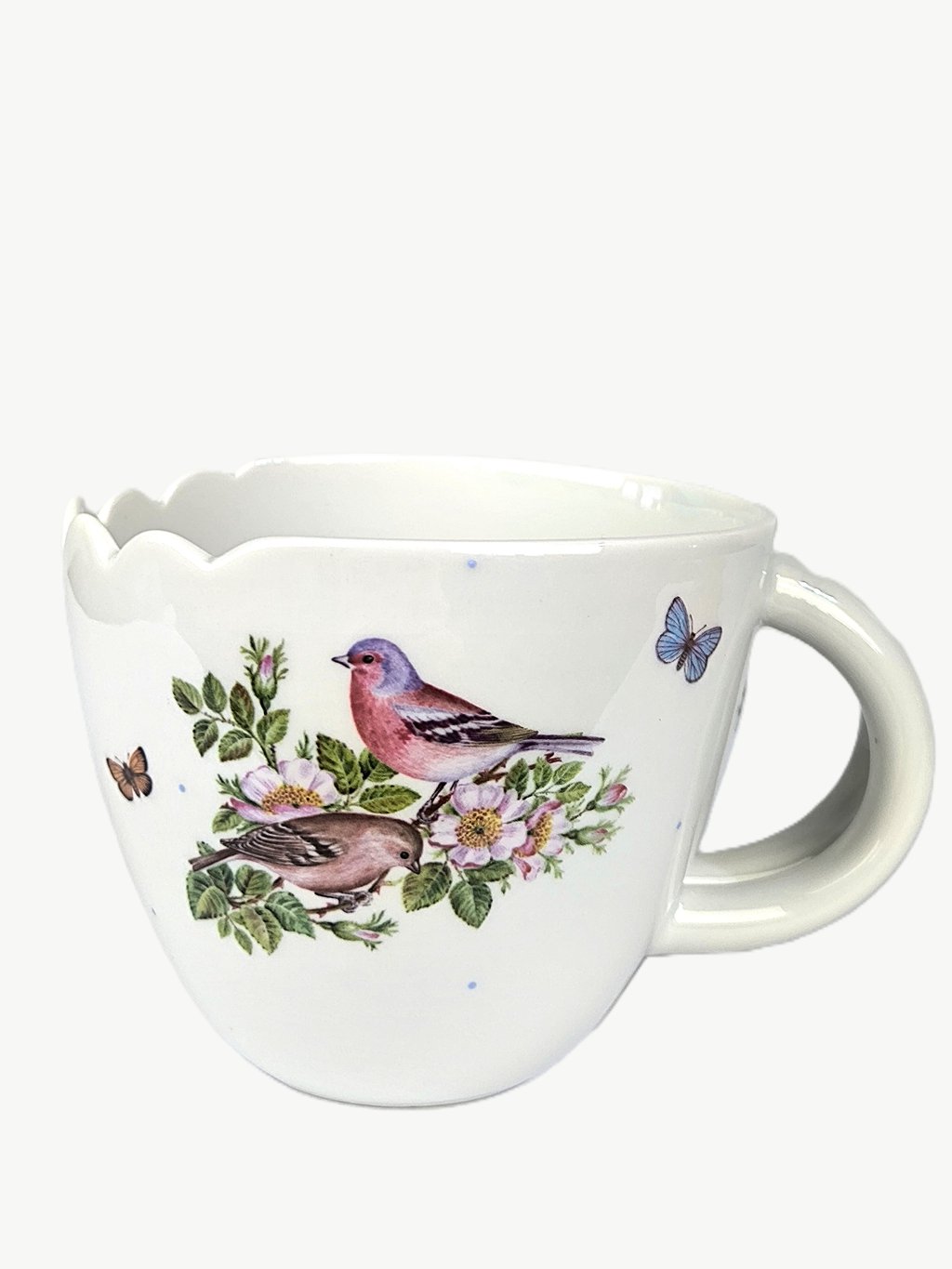 Dopřejte si svůj oblíbený čaj nebo kávu v jedinečném porcelánovém hrnku s motivem ptáčků. Neobvyklé dvojité ouško dává hrníčku nejen originální vzhled, ale i pohodlné držení. S objemem 500 ml je ideální pro všechny, kdo si rádi vychutnávají větší šálek svého oblíbeného nápoje.