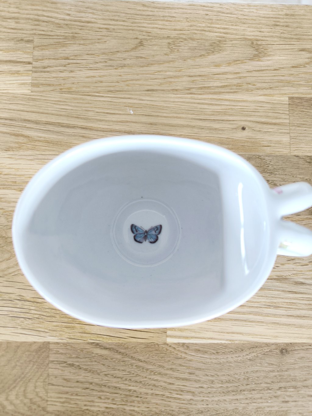 Hrníček má originální oválný tvar a když vypijete svůj čaj až do dna, potěší Vás obrázek motýla, který tam uvidíte.
