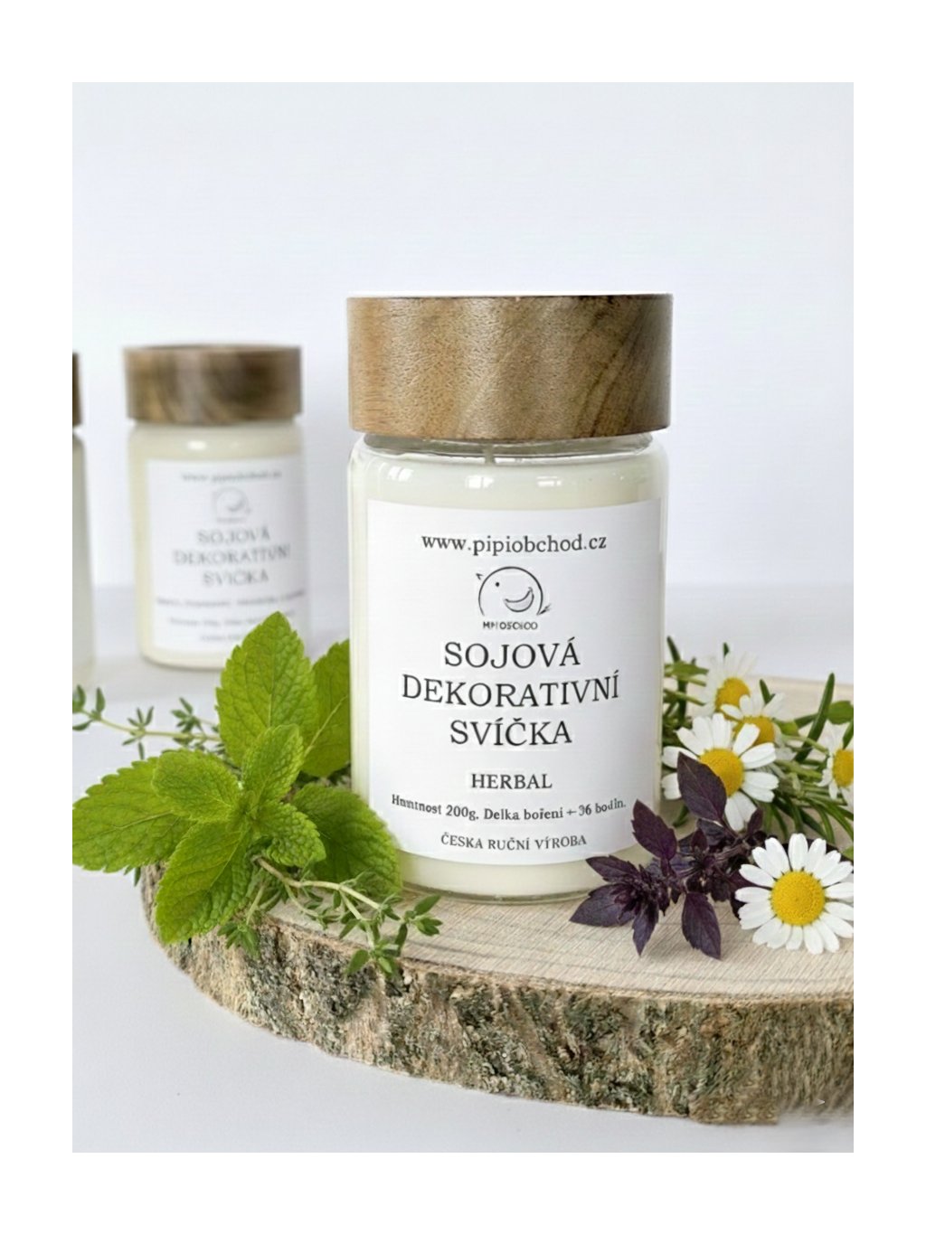 Sójová svíčka ruční výroby s jemnou vůní bylinek. Hoří čistě a rovnoměrně, má dlouhou výdrž a je šetrná k přírodě. Svíčka je ručně odlévaná do skleněné nádoby s dřevěným víčkem.
