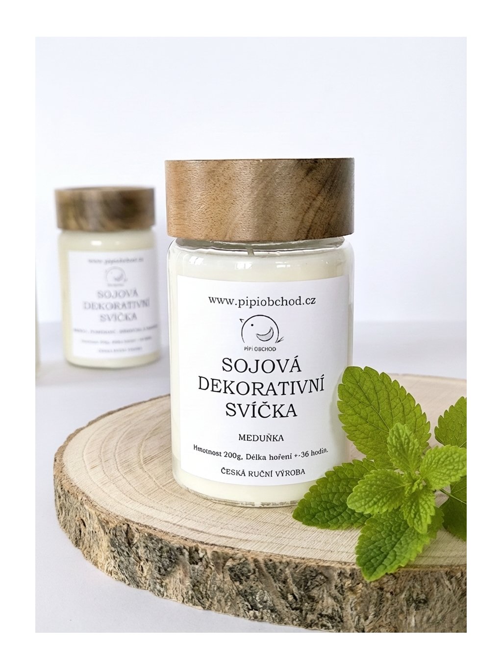 Sójová svíčka ruční výroby s příjemnou jemnou a uklidňující vůní meduňky. Hoří čistě a rovnoměrně, má dlouhou výdrž a je šetrná k přírodě. Svíčka je ručně odlévaná do skleněné nádoby s dřevěným víčkem.