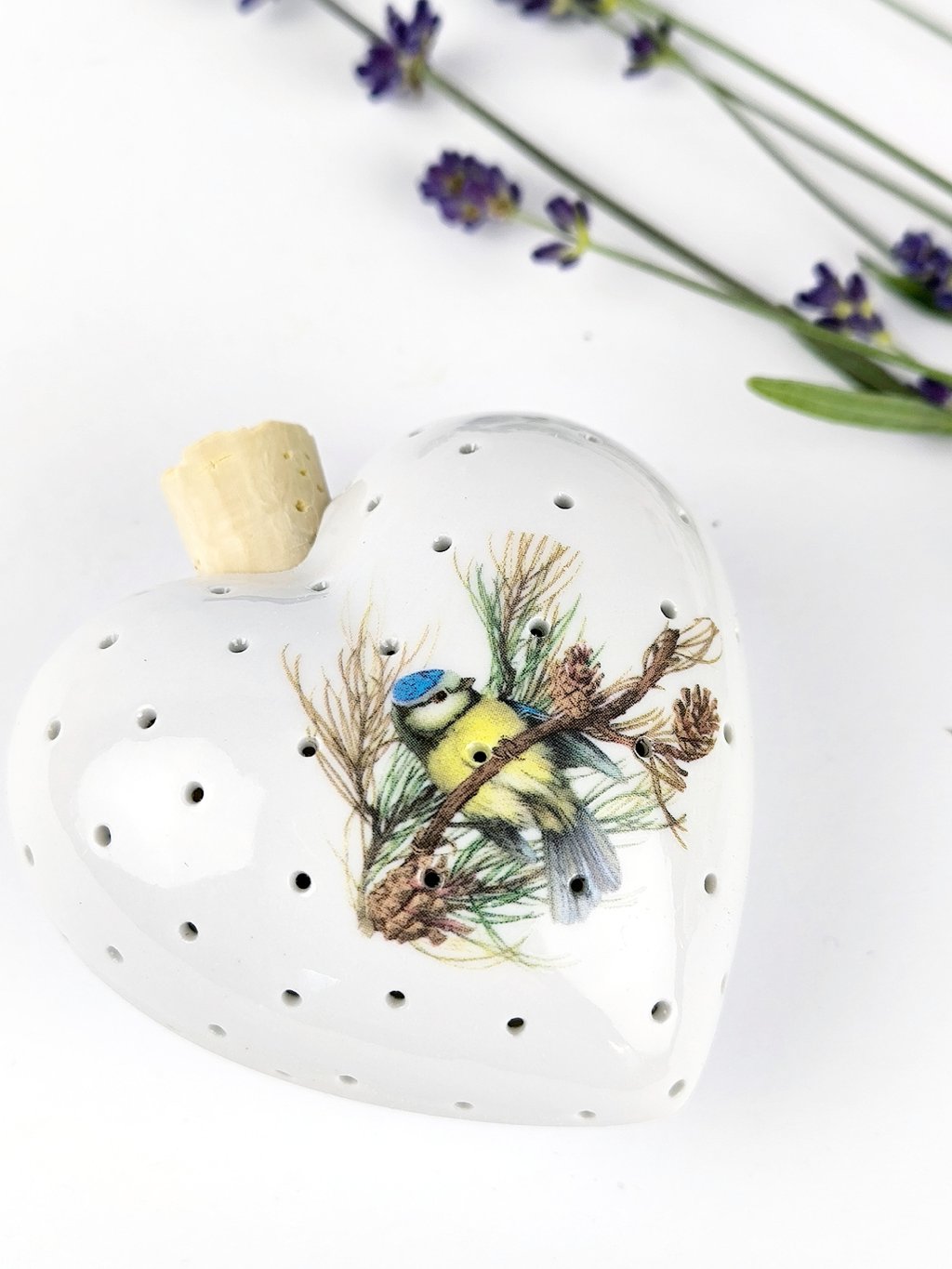 Provoňte si svou šatní skříň nebo zásuvku krásným, ručně vyráběným porcelánovým srdíčkem. Srdíčko je naplněné voňavou ručně sbíranou sušenou levandulí, která nejenže příjemně provoní vaše prádlo, ale navíc i odpuzuje moly. Pro rozvonění levandule srdíčkem jemně zatřeste nebo můžete levanduli promnout.